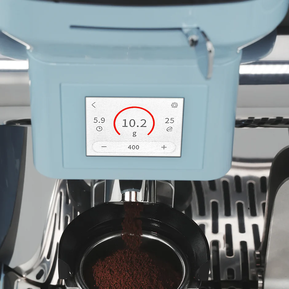 Our built-in scale measures grounds in real time and shuts off at your set dose—no guesswork, no mess. Just flick the lever and get barista-level strength and consistency, even on the busiest mornings